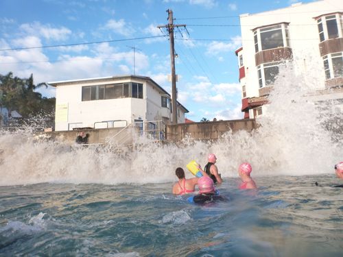 So the majority of us headed to half way – and a few id..brave ones ventured through the massive swell!! (and really high tide!)