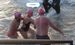 Lining up to go in – all seemed well…everyone smiling and calm…we should have realised what was coming from the Sunami-like flattened tide going out! GULP!!