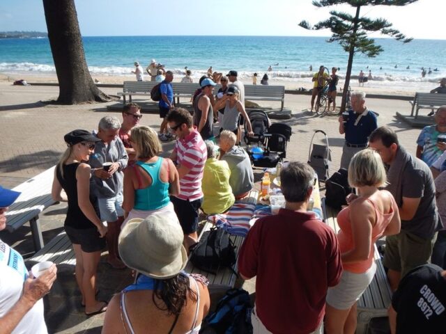 Every Saturday during summer there will be aΒ 6kmΒ swim β usual route is to Freshwater and back; then once a month there is aΒ 10kmΒ swim β this is to South Curl Curl and back.Β However, the final route depends on conditions that day so it is a good idea to arrive a little early to have a briefing from the designated swim leader. Β Both swims kick off at 7am.
