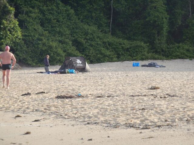 Elaine and Ted didn’t make the swim….slept on the beach instead…