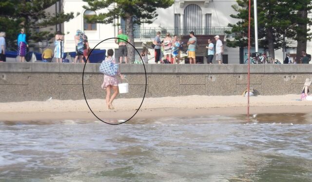 This wonderful lady walking along the beach collecting cigaret