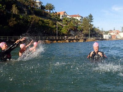 Ha ha! Actually, the Balmoral swimmers are now swimming with the 6.30ers and about half are now in pink caps, so I think they’re off the hazardous radar:)