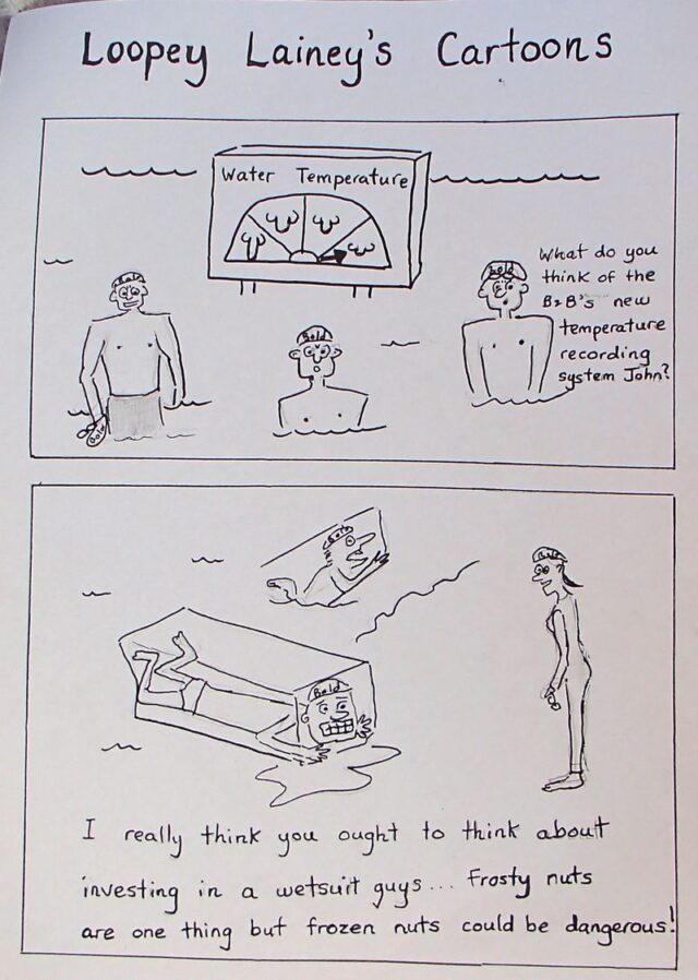 June and the start of the Winter swimming season. The number of swimmers stayed quite high as so many felt the benefits of cold water swimming and there was the challenge of the Cold and Beautiful badge! Robbie started off a fundraising group for Bear Cottage. We had to suffer the torture of the glow of his white, pasty Irish body!