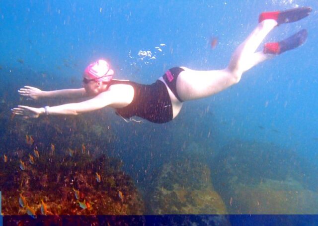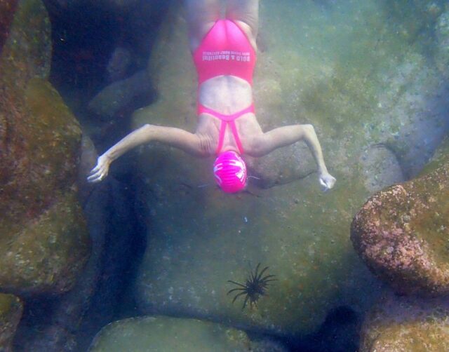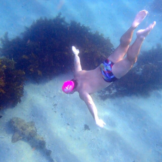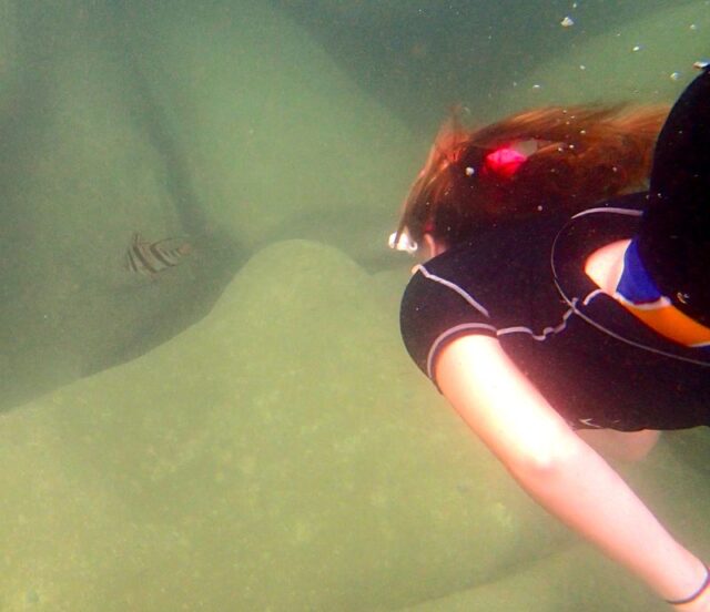 Although the water was a bit cloudy  and there didn’t seem to be many fish about, if you know where to look, (over the white rocks by the tall palm tree at Halfway) there were old wives, diamond fish, grouper etc. Teagan at 14 is a fantastic deep diver!