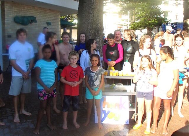 In November we raised enough money through our Gatsby Ball for a group of Kempsey kids to come to Manly and stay at the Royal Far West for a holiday and treatment. They greeted us at the end of one swim with refreshments and Thank yous!