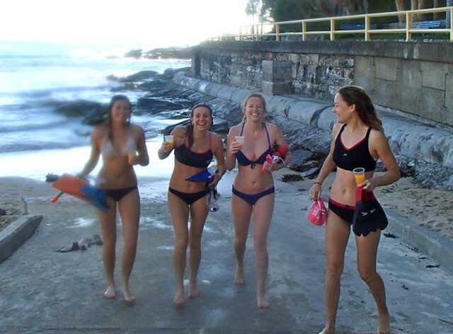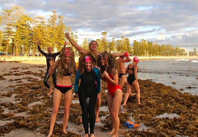 Every Saturday during summer there will be a 6km swim – usual route is to Freshwater and back; then once a month there is a 10km swim – this is to South Curl Curl and back.  However, the final route depends on conditions that day so it is a good idea to arrive a little early to have a briefing from the designated swim leader.  Both swims kick off at 7am.
