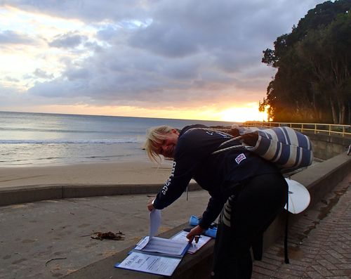 We all tick ourselves off as the sun brightens up our swim path…Hello Elaine!