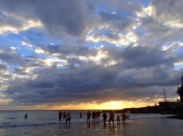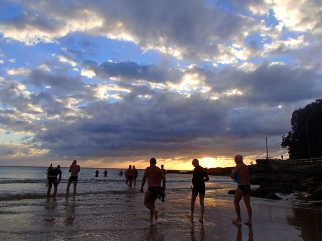 99 Bold and Beautiful swimmers turned up on this beautiful Thursday morning. The storm at around 4am may have deterred a few of you but by 6.30am the sun was squeezing through the amazing cloud formations. The water was warm, calm, smooth and very clear in patches. Loads of fish! Another sensational swim and so good for us!