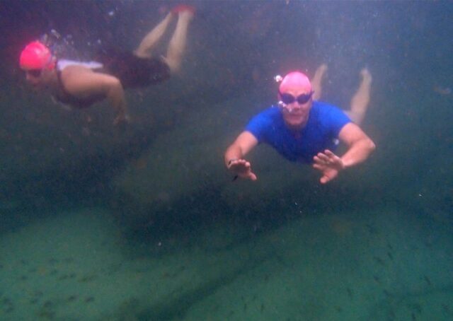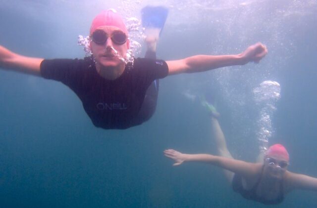 Our bloggers Mary and Simon get excited as we see that visibility around The Point is great! (Above and below the water.)