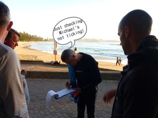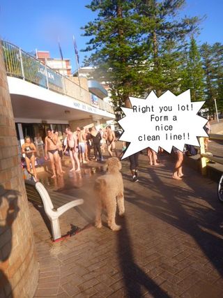 I’m sure Billy had his dog laugh too…Anna please tick tomorrow for my yesterday swim(early). Lesley there may be a few pink caps at Byron…Bruce B, Rosemary I think. I’m working 10 days this way so I brought The Cap…hope rearguard not too fast.
