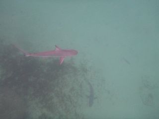 oh those sharks are so adorable. On the early lap one glided by so close to my face that even I, Mrs Magoo, could make out its facial piercings, in the form of a double hook. 🙁
