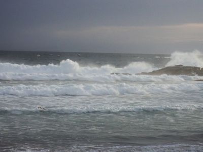 Mind you, there are always a few brave swimmers who are prepared to face off the waves.