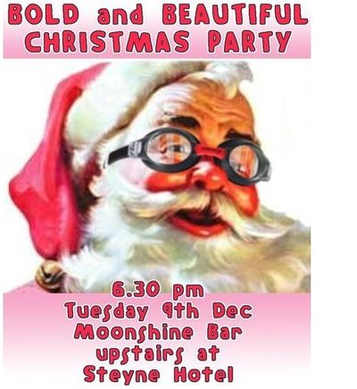 The B & B Christmas Party is on Tuesday 9th December at 6.30 pm in the Moonshine Bar (2nd Floor) at the Steyne Hotel. All swimmers and partners/friends are welcome. The theme this year is simply “Christmas“. So come dressed in your finest Christmas paraphernalia. There is no need to be shy, as we will have the whole bar to ourselves. The Steyne will provide finger food and pizza, with drinks at bar prices. Lots of fun and dancing guaranteed, with music by our own band “The Troubadors“, who have generously agreed to perform free of charge for us on the night. The cost is $10 per head, with all proceeds going to the running costs of the B&B. Our charity partner, the Royal Far West Children’s Home, will also be running a monster raffle on the night, so please come prepared to support them. Bookings are essential. Book HEREnow! Don’t miss this fun event, numbers are limited.
