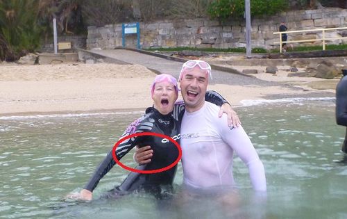 So much safer to keep wearing a wet-suit for now rather than one of those pink B&B reveal-all cossies that have started coming back into fashion for the girls:-)