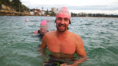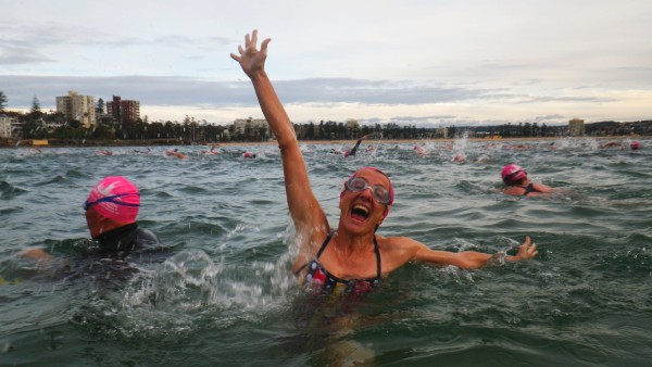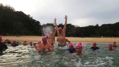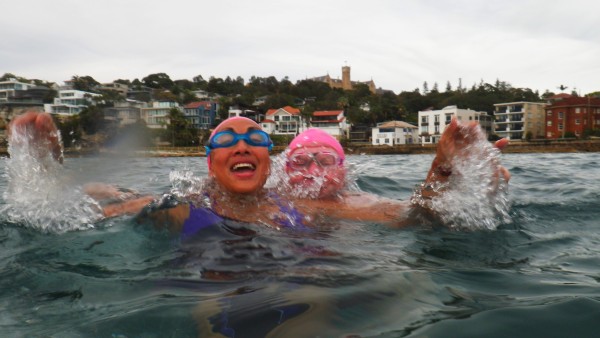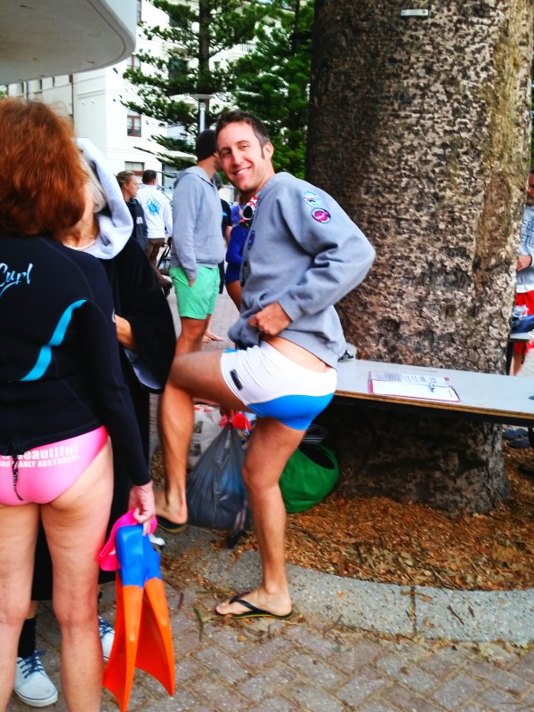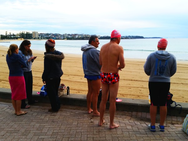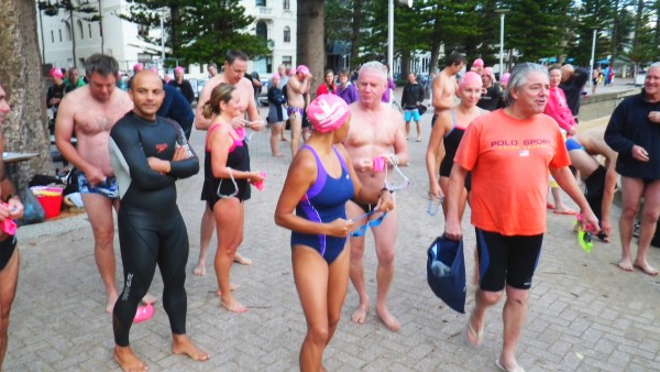 The Teachers getting ready for their signature Sunday Queenscliff swim..
