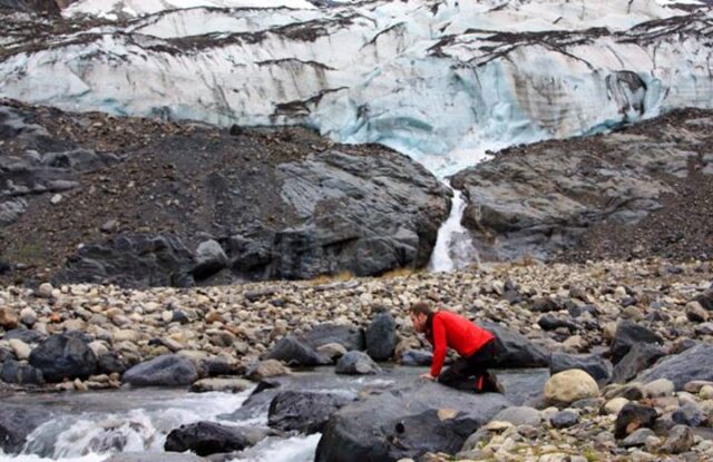 Here’s a photo of Rusty swimming amongst the icebergs at Greys Glacier, Patagonia. The water was just above freezing..