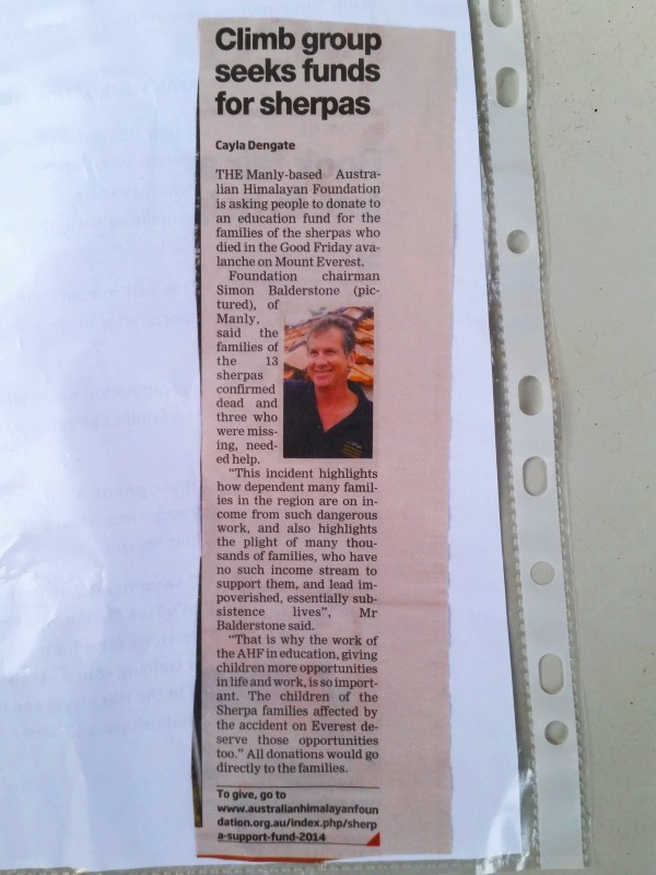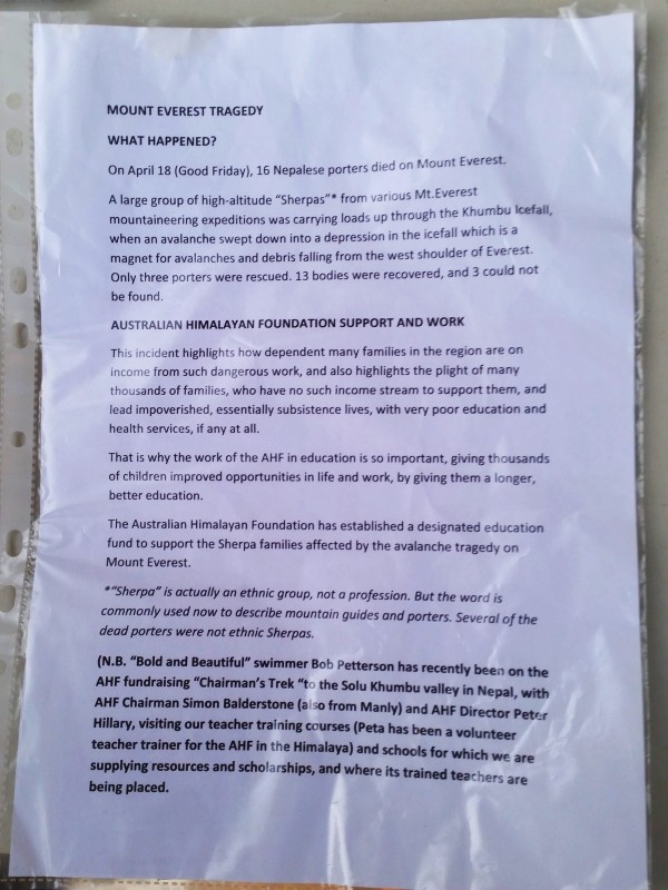 Peta was collecting donations for the Australian Himalayan Foundation who established a special fund to support the Sherpa families affected by the recent avalanche tragedy on Mt Everest.