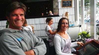 Very witty and a perfect desert at our Thai lunch after a stormy BWB swim…