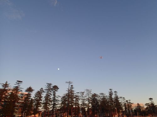 Rusty appears to be hailing the moon this morning, but on closer inspection a drone had swooped in on our swim.