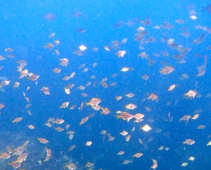 I saw squid, an eagle ray and the usual aquarium around the rocks today but not as much as earlier in the week. Here are some of the weird and wonderful sea creatures we see at the B&B!