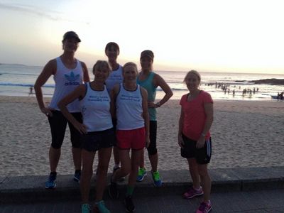 Lainey Loo Manly Beach Running Club this morning with Drinks Express in background.