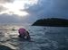 The swim across was full of bounce with the moon more visible than the sun.