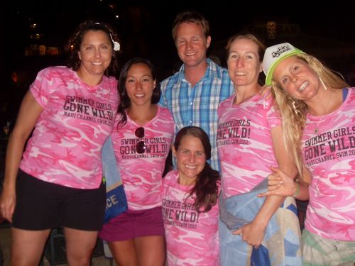 Plus this photo just in from Adam Moore, of our fabulous team at the finish line of the Maui Channel on Saturday. Where Adams dad, Ray, also one of our swimmers, joined them on the boat as support crew !!