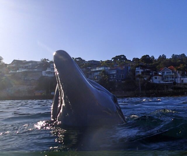 On Sunday, I watched in amazement as the dolphin swam amongst swimmers from Shelly Beach to The Point. I swam back to Manly and luckily Silky was still there at The Point enjoying being around swimmers. She stayed around, poking her nose between rocks and weed to have a feast on the abundant marine life around there!