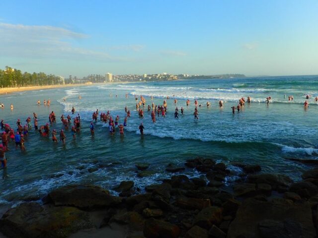 7.15am….The swim over was pretty uneventful for me…but at Shelly… it was all happening..
