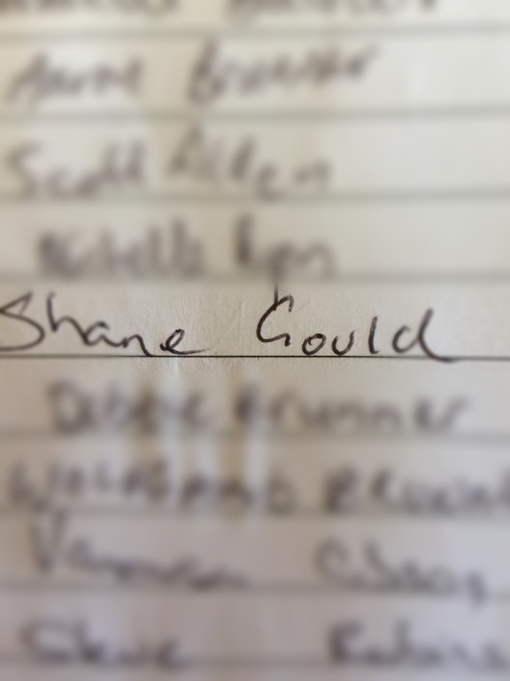 6.30am Shane Gould signs in! …and if you don’t know who she is…(as if!)..