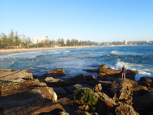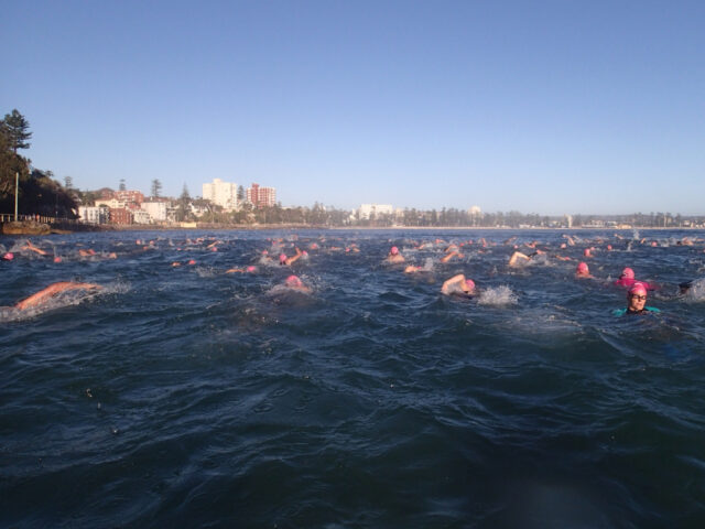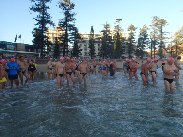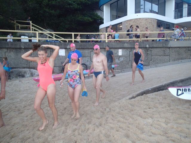 Answer: Swim of course! Manly puts on the sun for the opening of the surfing comps and we do what we do best, swim!