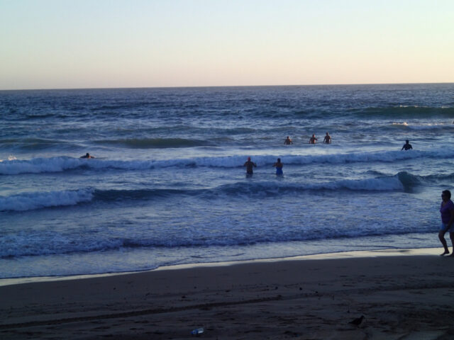 Our first swimmers embrace the waves.