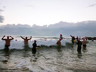 Before 6 swimmers continued on for a double and others caught the perfect wave