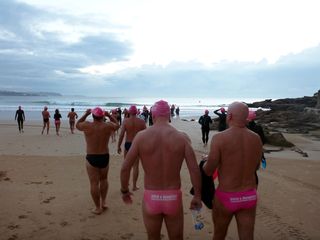 Cloudy skies and a calm sea making for a lovely atmospheric swim this morning, with lots of swimmers still only in the pink 🙂