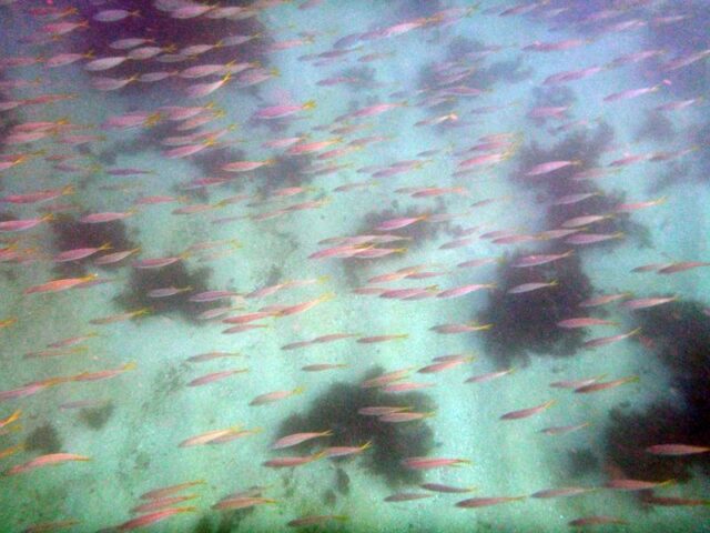 Sooo many yellow tail scad. There were two beautiful big king fish amongst them which were keeping them on their fins