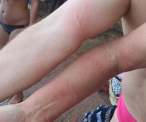 These descriptions make me realise I got away quite lightly when I had a bluebottle sting at North Curl Curl back in late November. I can still just about see the light-coloured line on my elbow where I was stung, but I didn’t get any of the after-effects described above. Best wishes for a rapid recovery to all those stung today.