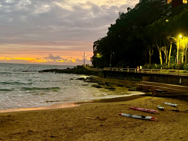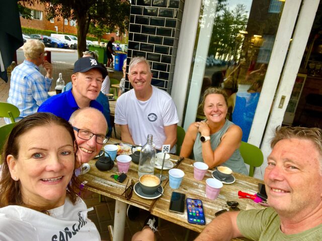 23 degrees warm in the water. Birthday Boys Brett & Chris swam north & to Shelly respectively.