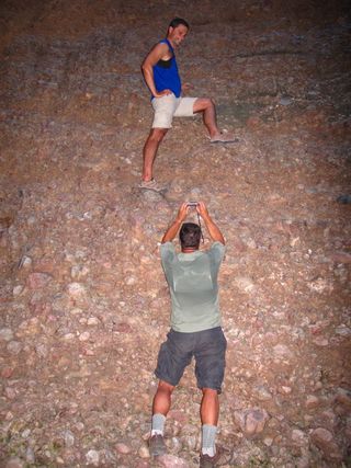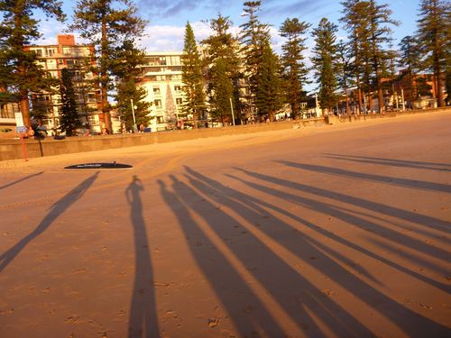 Our shadows matching the Norfolk Pines….