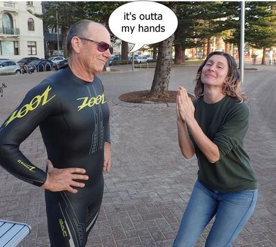 Nice to see you all again today! Sorry you got our horrible Blue Mtns burnoff stink down there. It’s all gone from here now! Thanks to DWSS (whoever you are) and John for the offer of swimming with me. I did find it hard after so long, but hopefully someone can do same next week when I make the pilgrimage again.