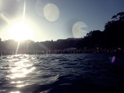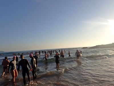 After a wild night of music, wine, and debauchery, most swimmers still made it back to the beach in time for the 7am main event.