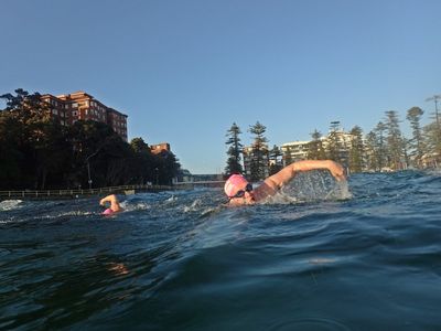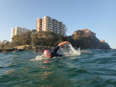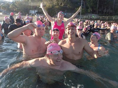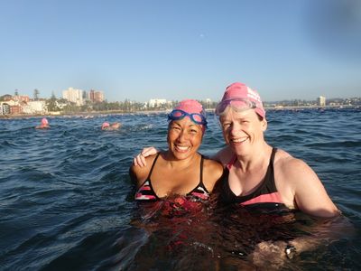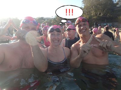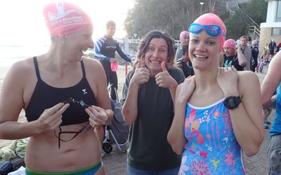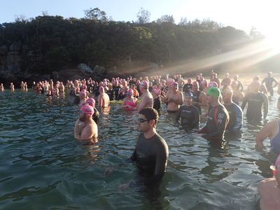 Another stunning morning and huge turnout with over 150 swimmers here at Manly Beach. Lips and Lesbubbles reporting for blog duty.