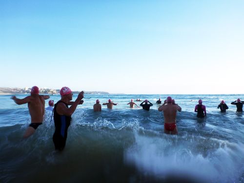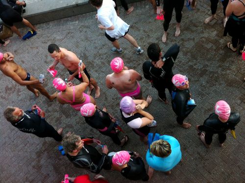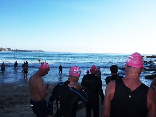 John’s patting himself on the back for having already completed the Bolderdash as we jump in for the the 7am swim 🙂