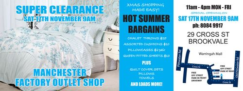 One of our sponsors, Logan and Mason is having a special sale this Saturday from 9am ! Lots of bargains for those who cannot get to the store during the working week. Please see the flyer below which also shows the location. If you need new linen don’t miss this opportunity.