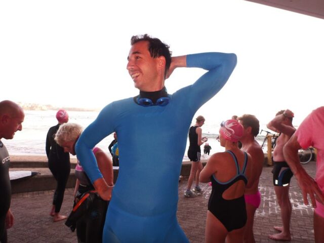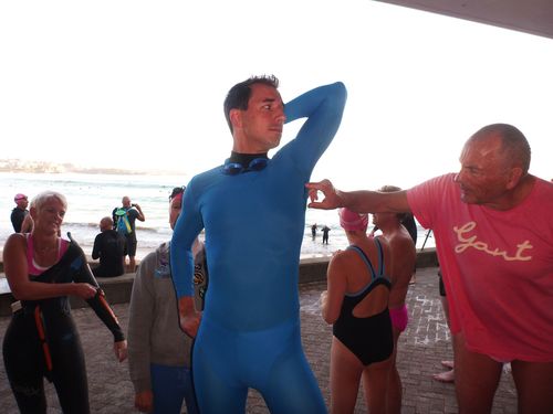 Rainer’s finally worked out it’s worth getting out of bed to arrive at swimming 10 minutes earlier… more blog tarting opportunities, especially in the smurf suit.
