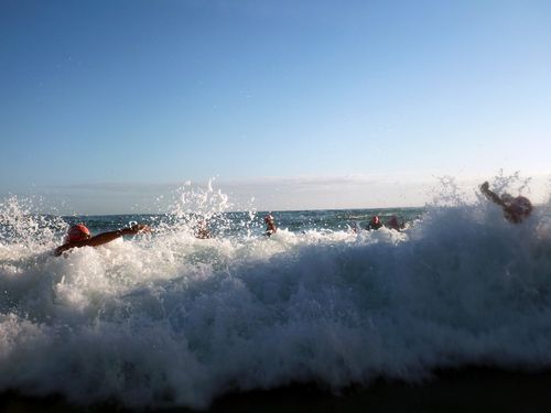Sarah’s concentrating hard to hold those flippers streamline as the waves come at her 😉