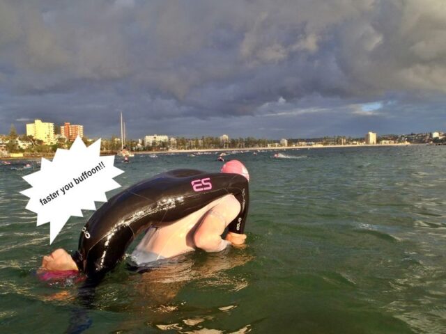 Lesbutt – the rumour at brekkie was that instead of persuading Smurfie Annie Yay not to join the skinny swim, she’s persuaded you to join!!