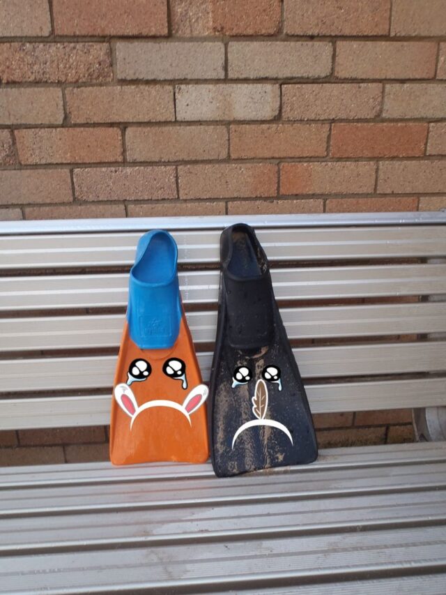 This is becoming a habit…2 more flung aside flippers! Just abandoned by the showers this time…(i left them there though…)