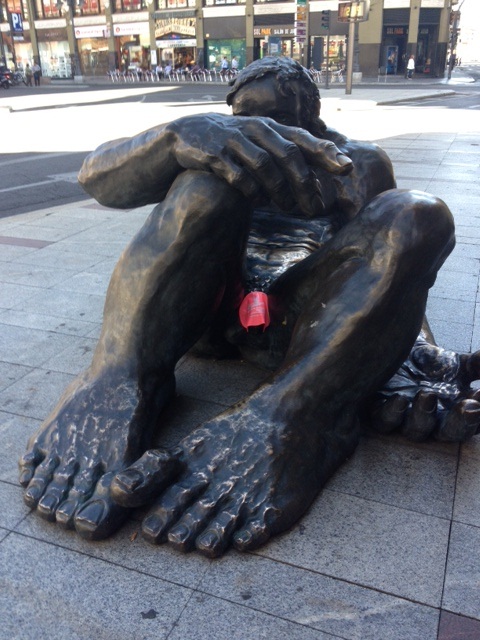 “Hola from the Camino de Santiago! Bold and Beautiful Art Squad accessorizes a bashful swimmer in Leon, Spain. Xx Libby”