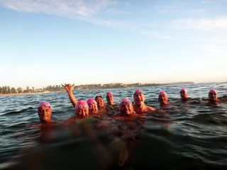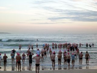 The whole event is a 2km swim, 3km kayak and 20km hike. Each team needs a swimmer who is required to swim 2kms as 4 laps of 500 meters from Shelly Beach.