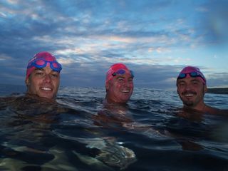 Plus, not to go unmentioned, we also had 4 happy swimmers who enjoyed an early journey swim up to Queensie and back; the 3 musketeers below plus James the cameraman 😉